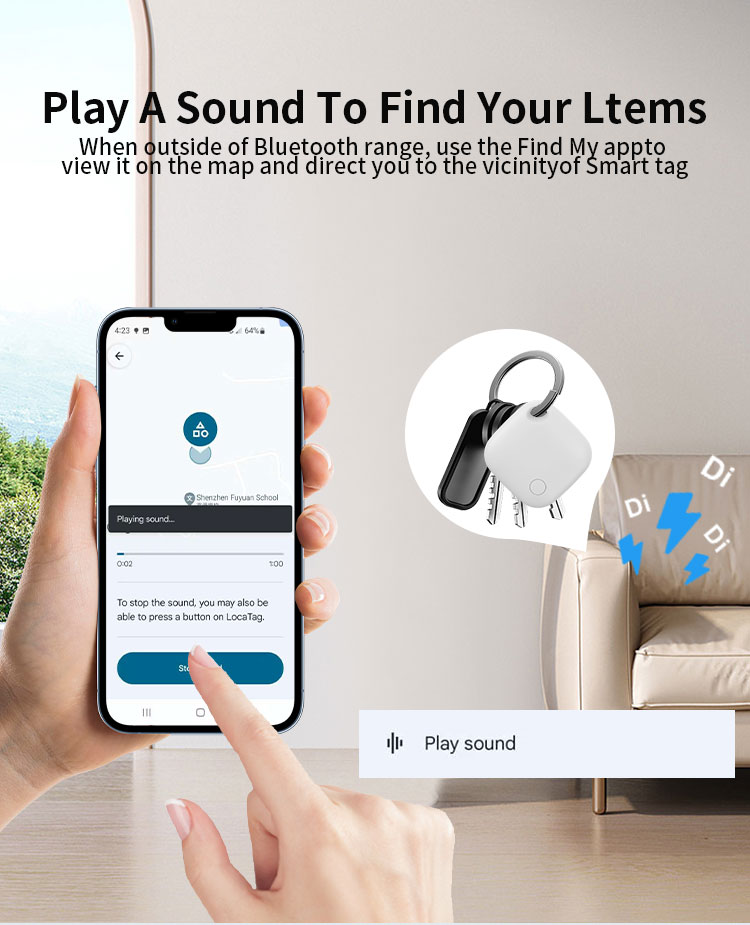 1.Play sound to find your items nearby.